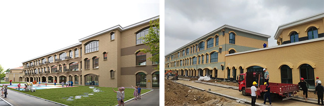 步鳳鎮(zhèn)中心幼兒園改造項目效果圖(左)與現(xiàn)場圖(右)