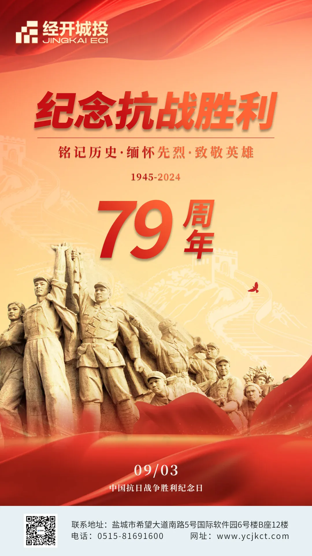 值此抗戰(zhàn)勝利79周年之際,讓我們向英雄們致敬,奮勇向前,愿?jìng)ゴ蟮淖鎳睒s昌盛,和平永駐!